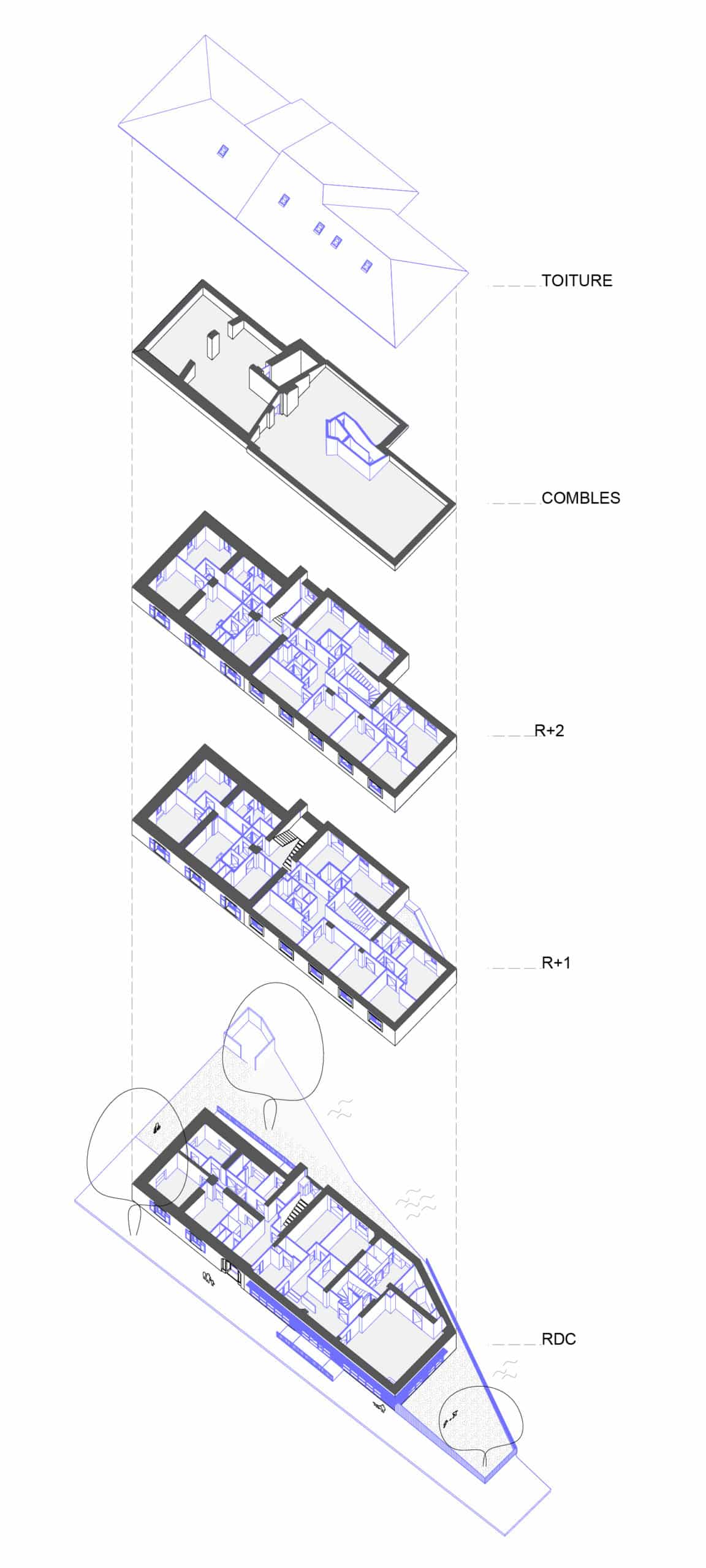 Tout au long du projet, nous avons cherché à maximiser le réemploi des éléments en place (récupération des occultations, adaptation de la conception en vue de conserver la charpente).