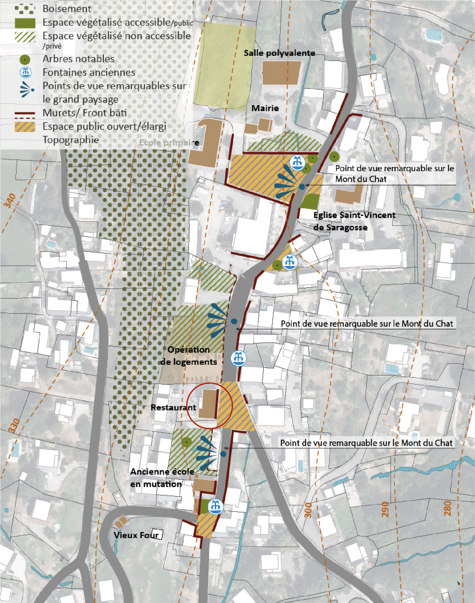 Insertion urbaine : un bâtiment visible et facilement accessible, en lien avec le cœur du village.