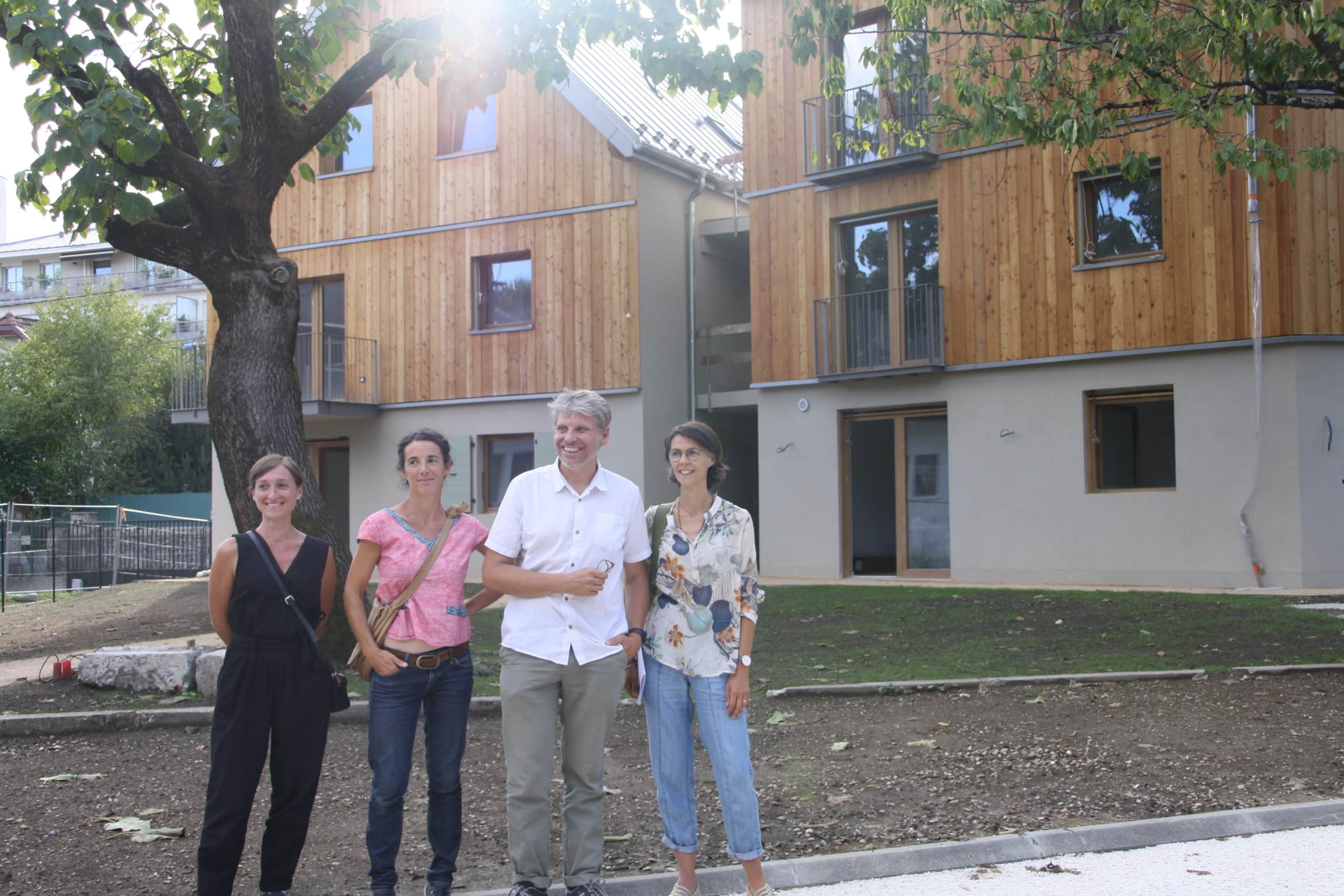 Le 8 septembre 2022 a eu lieu la visite commentée des Petits Paliers organisée par le CAUE Savoie, avec présentation de la pico-promotion selon la maîtrise d’ouvrage Au Bercail, et la présentation du projet et de la démarche de réemploi par Kayak Architecture. Elus, techniciens, architectes, urbanistes et paysagistes étaient au rendez-vous.